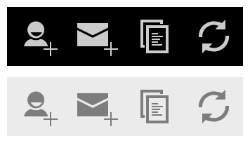 In order to maintain consistency across the application's Action Bar, all Action Bar icons should use the same color palette and effects.