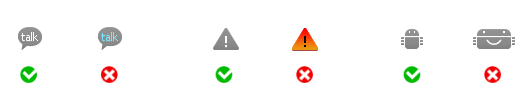 Below are some "do and don't" examples to consider when creating status bar icons for your application.