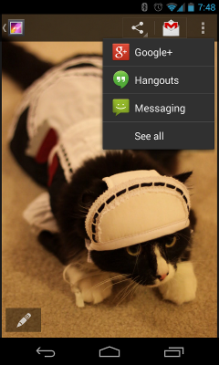 Note:  ShareActionProvider is available starting with API Level 14 and higher.